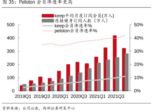 这里,萝卜君了解到Keep的海外对标公司Peloton为全球最大健身平台,主打智能健身设备+课程内容+社区服务,疫情红利期最高市值曾突破500亿美元。那Keep会成为下一个Peloton吗?值得期待。