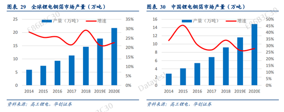 简单的说就是全球新能源汽车销量带动着锂电池总销量增长,而铜箔需求伴随着锂电池市场的快速发展。