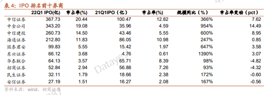 Q1全市场IPO规模1798.73亿,同比增长129.6%。IPO 规模前三的机构为中信证券、中金公司、中信建投。