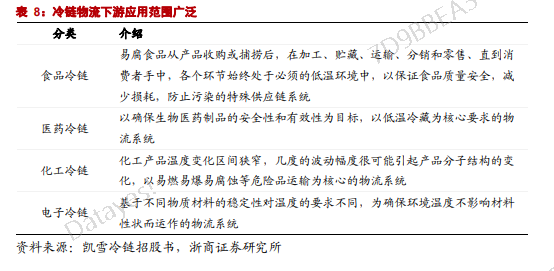 从下游来看,冷链物流应用范围广泛,餐饮、零售、生鲜电商、医药、化工、电子等都在其中,但主要两个大方向还是食品和医疗。