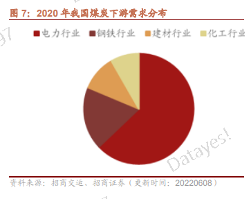 需求面,在我国,煤炭消耗较高的行业主要有电力行业、钢铁行业、建材行业、化工行业。其中电力行业用煤消耗大约占60%,主要是动力煤火力发电。钢铁行业主要使用炼焦煤进行粗钢、钢材等产品的冶炼。