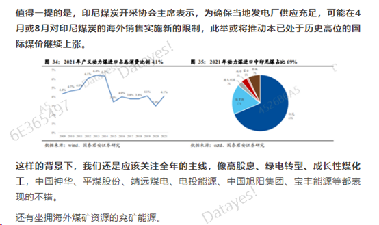 而印尼是中国最大的进口煤源,印尼的煤价拉升,进口价就会高,从而影响国内。前面说的印尼提出的海外出口新限制,就对我们有直接的影响。
