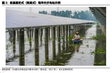 这类电站是指借助浮体材料与锚固系统使光伏组件、逆变器等发电设备漂浮在海洋上进行发电,适用于水深大于5m、受台风影响不大的水域。