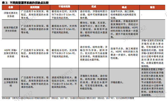 目前海上光伏电站的设计寿命为25年,甚至更久,浮体系统作为其重要的支撑平台,决定着整个电站能否正常运行,而不同类型电站漂浮系统的优缺点和造价不同。