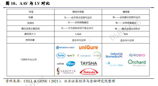 当前使用最广泛的两种病毒载体:腺相关病毒(AAV)和慢病毒(LV),其中AAV常用于基因治疗,LV常用于细胞治疗。