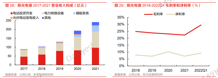 三是光储齐驱的阳光电源,公司主营业务包括光伏逆变器等电力转换设备、电站投资开发和储能系统及其他业务。