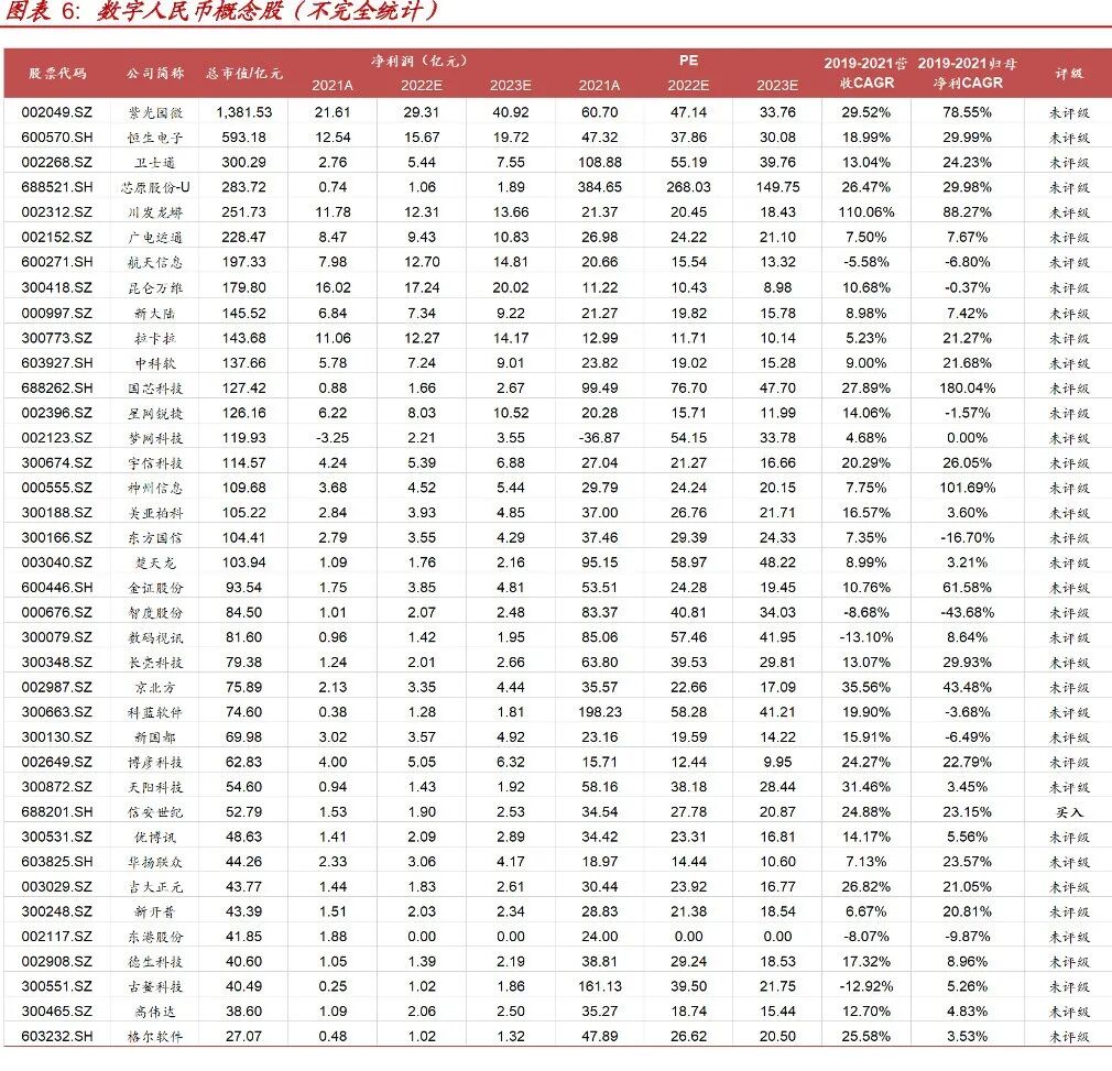 萝卜君这里还给大家准备一些数字人民币概念股,列表如下: