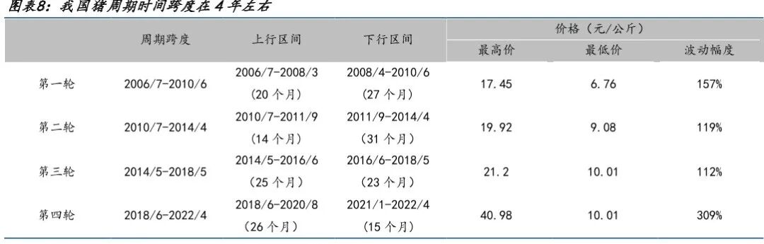 最近,猪板块又回到大家视野,临近年末,生猪市场期现价格异常大跌的走势出现缓解,昨天,国内期货市场上生猪主力合约2303领涨,单日涨幅超5%。很多机构也在纷纷讲述板块机会,粉丝们也有不少留言给萝卜君的,这之后,我们对猪板块的态度应该是怎样呢?一般来说,养猪热情和猪肉价格密切相关,当生猪和猪肉价格上涨时,生猪养殖的利润高,养殖者自然就愿意养殖,也就是大家说的“补栏”,当“补栏”到一定量时,生猪供给增加,最后就会导致供过于求。一旦供过于求,生猪和猪肉价格就会开始下降,利润就会下降,大家养殖的意愿就会开始减弱,持续下降到一定程度时,供又不应求,价格又再一次上涨。之后,养殖热情又重复上面的状态,周而复始,也就是一轮又一轮的周期。这个周期完整的说是这样的:从引种到仔猪,从仔猪到出栏,再到销售,这一共的时间大概是4年左右的时间。以价格来看,就是价格经历了“谷—峰—谷”是一轮周期。2006年以来,我国大致经历了4次大的猪周期,这在之前的文章里给大家讲过,今天再带大家复盘一下。第一次是在2006年5月,我国生猪爆发“高致病性蓝耳病”,导致猪肉产能萎缩,猪肉供给减少,因此猪肉价格大幅上涨,带动猪价自最低4.6元/kg上涨至2008年3月的16.4元/kg,弹性达257%。持续一年之后,“蓝耳病”被基本消灭。这之后大家还在扩产,存栏量不断上涨,之后,猪肉价格开始下降,下降又导致大家不爱养猪了。直到2010年8月,能繁母猪的存栏量下降到4580亿头,随着猪肉供给减少,2012又年猪肉价格大幅攀升,第二次周期也就开始了。于是养殖户又开始纷纷增加扩产,之后猪肉价格又一次进入下行通道。第三次是在2014年,国内那时掀起的环保风暴导致大量生猪养殖场关停,随后2015年猪肉供应减少,在5月,能繁母猪同比增速最高下滑15.5%。之后猪价大幅反弹,从7月开始,之后连续的13个月里,猪肉价格的同比增速都是两位数的高增。第四轮是从2018年开始,受致死率高且没有疫苗的非洲猪瘟疫情的影响,国内的母猪产能在本轮周期中的去化幅度比过去每一轮周期都大(30%以上),猪价的弹性也明显强于历史,自2018年最低10.0元/kg涨至最高41.0元/kg,弹性达310%,也就是离我们最近一次的“吃不起”猪肉。随着4月份猪肉价格的回调,也伴随着第四次猪周期的结束,现在作为第五次周期的伊始,已经有很多机构在预判这次的走势及高度了,这也是我们大家所关心的。萝卜君除了对“猪周期”的持续时长和价格变化幅度进行梳理外,还发现了一个规律,就是在每轮生猪价格上涨前,均会出现价格“二次探底”的情况。为什么这样?市场认为这大概与“猪周期”结束的时间点有关。每一轮周期的第一次价格底部均是在4-5月,这时,养殖户看到价格底部的信号后,会中止补栏,但是猪肉也是有季节性消费的,4-5月的价格底部时,正是猪肉的消费淡季,不能真正的去栏,而是要等到冬天的腌腊季,这时对应的就是价格的二次探底。基于上面谈到的4年周期定律、2次探底定律,这第五次周期我带大家分析下:供给方面,自5月起,能存栏环比转正,但整体来看,行业整体资产负债表尚未完成修复,对后市猪价也较为悲观,导致今年行业补产能节奏偏温和。农业农村部数据显示10月能繁母猪存栏同比上升约0.7%,12月二元母猪、仔猪市场销售价为32.94元/kg、44.92元/kg,成交还是较弱,在另一层面反映今年下半年市场并未出现快速补栏,对明年猪价或形成较强支撑。需求方面,截至12月15日全国生猪价为19元/kg,环比上周跌幅达1.71元/kg,主要就是受疫情对冬季消费造成抑制,还有就是端前期二育和压栏集中出栏的影响,同时连续的价格调整也会导致市场出现对后市信心不足的集中出栏抛售。总之,短期猪肉价格呈现反常规的低迷状态,究其原因,主要是近期新冠疫情呈爆发之势、多地感染人数快速冲高,终端消费受到显著冲击,进而导致肉类需求旺季不旺。此外就是产业对未来预期的不确定性导致短期供给节奏的变化(比如二育猪的抛售等)等因素加速了价格下行。再看看现在的市场估值,当前,各猪企市值无论与历史峰值还是与历史均值相比均处于低位。以牧原为例,其头均市值在3780元/头,而历史中枢在7000+元/头,最高点则在21000+元/头。12月以来,猪价从21.95元/kg下跌至19元/kg(截止至12月16日),而各猪股股价已止跌,说明板块整体估值水平较低已形成一定市场共识,继续下行空间应较为有限。猪价的快速下跌带动去产能加速,按照正常生产周期,今年5月份能繁母猪存栏开始环比转正,对应明年3月份之后肥猪供给进入增加阶段,叠加节后需求淡季,生猪行业或进入微利状态。但近期猪价快速下跌后,行业不少养殖主体再度回到亏损状态,有机构监测到,能繁母猪存栏环比下降0.05%,继今年4月后再次迎来产能去化,这么看去产能的窗口提前是可能的。在这样的背景下,具有成本优势的猪企可能会可获得更好的盈利,而超额收益越大的企业扩张信心就越强,得到的社会资源支持也更多,最终的扩张速度也会更快。历史数据来看,只要行业内的企业处于扩张状态、成本没有失控,每年的市值底部都在抬升,特别是优质企业的高ROE和高成长,它们在不断为股东创造价值。写在最后,我再给大家讲讲生猪养殖产业链,其上游为饲料原料及加工、疫苗兽药、种猪繁育及相应设备供应商。中游产业链为生产养殖;下游为屠宰加工、肉制品加工等