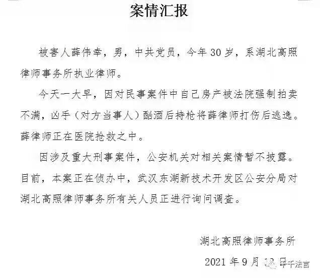 根据死者所在的律所发布的案情汇报,嫌疑人是因对自己民事案件中自己房产被被法院强制拍卖不满,于是就持枪把律师给枪杀了。