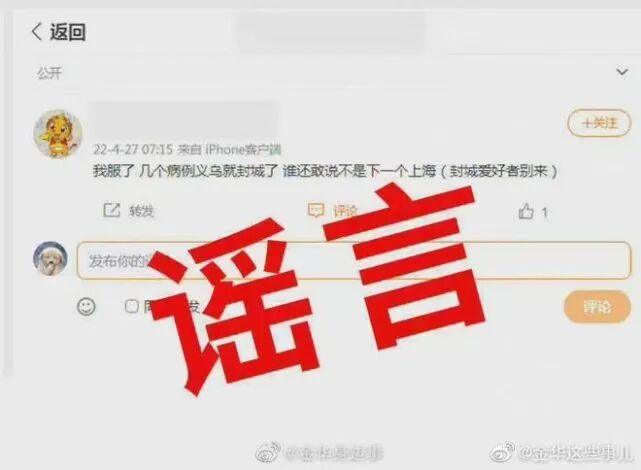 对此,义乌相关部门进行了辟谣,“封闭管理”不等同于“封城”,“封城”是对义乌“静下来、慢下来”防疫管理措施的错误解读。