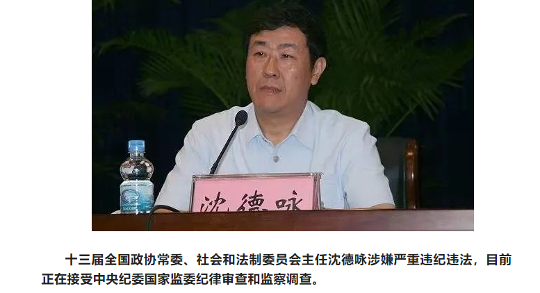 2022年3月21日下午16时许,原最高人民法院党组副书记、常务副院长、一级大法官沈德咏被中纪委官宣落马,“涉嫌严重违纪违法”,短短的通告中直呼其名,连“同志”的称谓都没有用。