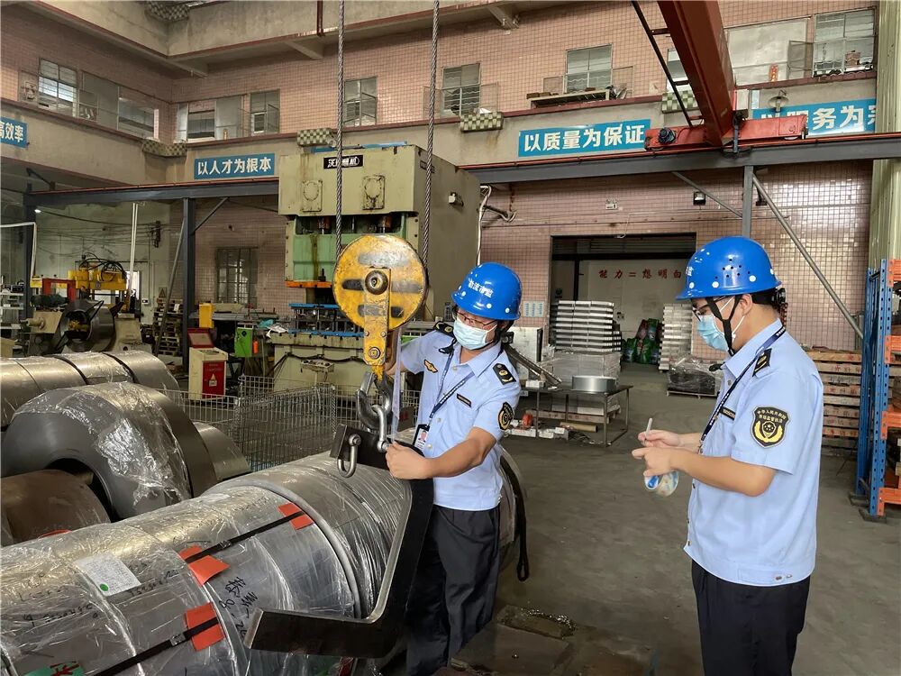 据了解,额定起重量3吨以下的起重机械未纳入《特种设备目录》,存在超负荷起吊、货物歪拉斜挂起吊等违规操作的问题。为做好起重机械分类安全监管工作,执法人员现场通过查阅档案资料、询问相关技术人员、察看设备状况等形式,全面了解安全管理制度建立及落实、作业人员持证上岗、设备日常维护保养、安全知识培训教育及应急处置等情况。现场检查发现,某企业涉嫌擅自将3吨及3吨以上电动单梁起重机的大梁吨位标识改成2.8吨,以逃避特种设备安全监管,执法人员立即对该企业进行立案调查。