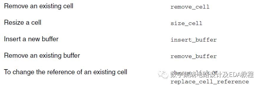 如果ECO改动比较小,可以用一个包含网表编辑命令组成的Tcl文件以及eco_netlist -by_tcl_file命令来更新整个设计。如果使用的是freeze silicon的ECO flow,则必须在该命令后边加上-freeze_silicon选项。当然也可以直接在命令行中输入这些网表编辑命令,或者直接source该Tcl文件。