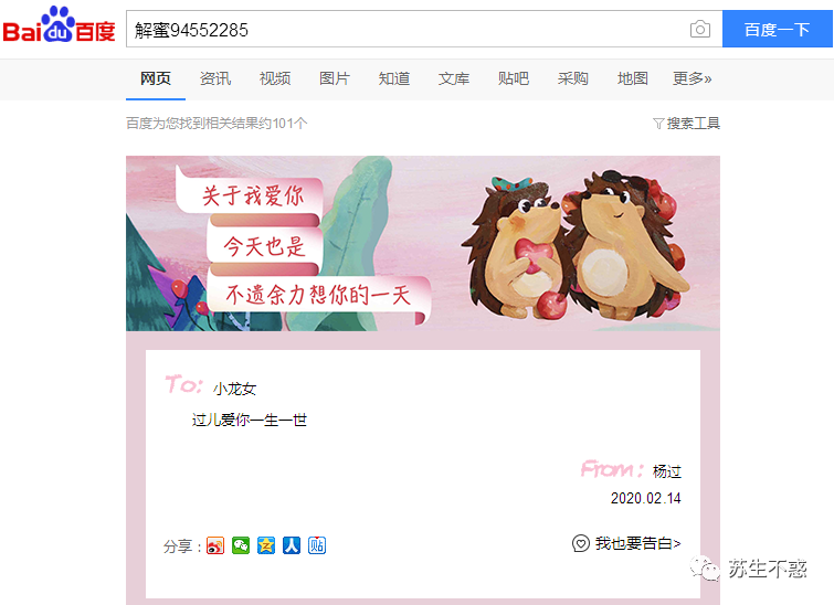 让对方在百度搜索解蜜94552285 就能看见你的表白内容了。