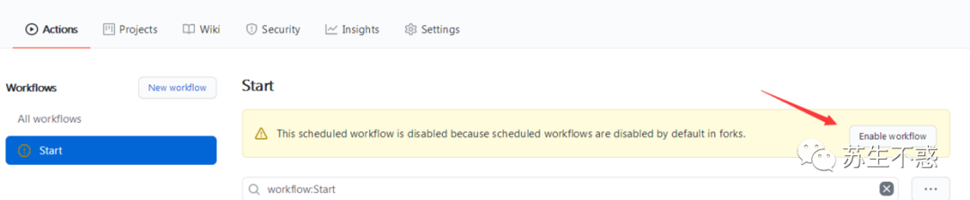 添加secrets后开启actions,它默认是关闭的。