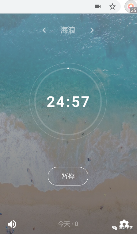 这是个白噪音专注计时器,帮你保持专注,提升工作学习效率,扩展地址https://chrome.google.com/webstore/detail/tide-focus-timer-white-no/lmbegcmkonokdjbhbamhpmkihpachdbk ,工作太累的时候听听海浪的声音。