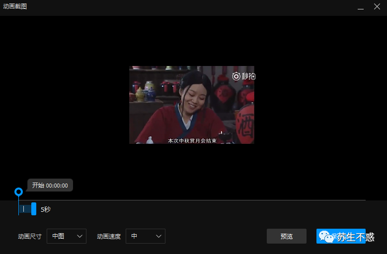 这里只截取前5秒ffmpeg -ss 0 -to 5 -i 武林外传,幻境再美终是梦,珍惜眼前始为真,莫使金樽空对月,举杯幸会有缘人.mp4 -s 400*300 -r 15 武林外传中秋节.gif可以看到转换的 GIF 不到2M,这样就可以发在公众号上了。看效果: