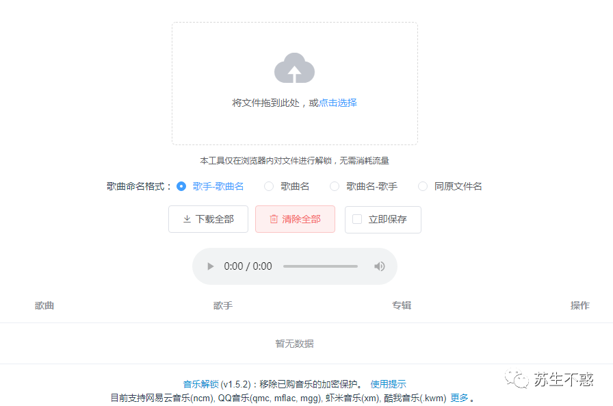 如果是其他平台上下载的歌曲是特定格式,比如QQ音乐qmc,网易ncm,本地播放器没法播放,这就需要工具来转换,推荐在线工具 https://tool.ixarea.com/music/ ,可以轻松移除 QQ 音乐、网易云音乐等音乐软件的加密付费音乐。