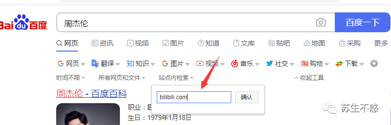 site 站点搜索,比如在b站搜索 周杰伦 site:bilibili.com 周杰伦,百度搜索工具里可以直接输入站点搜索,类似的语法还有查询天气 weather: 北京,查询股票stocks: 微博,查询地图map: 北京,查询电影movie: 夺冠,查询新闻源source: 国庆放假安排 。