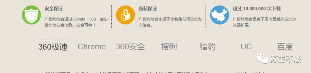 不过大多数人还是用百度居多,这里推荐一个 Chrome 扩展 广告终结者 ,它可以清除网页上的浮动广告,购物广告,恶意弹窗,跟踪代码,让你浏览网页更快更清爽, 而且支持绝大多数浏览器。Chrome扩展地址 https://chrome.google.com/webstore/detail/%E5%B9%BF%E5%91%8A%E7%BB%88%E7%BB%93%E8%80%85/fpdnjdlbdmifoocedhkighhlbchbiikl?hl=zh-CN ,安装Chrome扩展方法见之前文章上不了谷歌如何安装 Chrome 扩展?