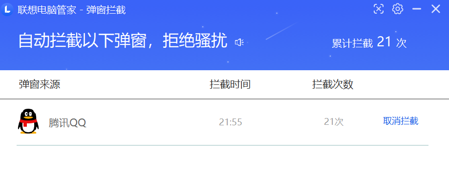 这个是联想电脑自带的https://guanjia.lenovo.com.cn/ ,也就不用安装腾讯或者360的管家了 ,拦截功能很赞,比如QQ的弹窗新闻。