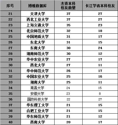 浙江大学排名第四,杰青154人。另外,浙江大学毕业的长江学者本科生校友共84人,排名第二。