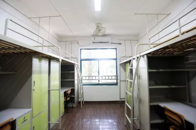 学校寝室基本上都是四人间,部分楼有独立卫生间。宿舍里面全部配有空调,每层楼有热水机,大部分有阳台,宿舍环境还是很赞的。