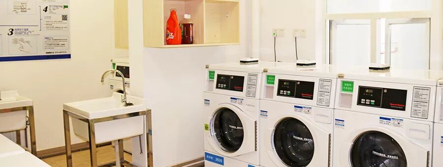 C20栋学生公寓,安放了十多台滚筒洗衣机的洗衣房,不怕洗衣服洗到腰酸背痛啦!