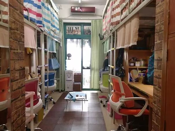 六人间分为两种:一种是无独立卫浴,有空调,采用公共卫浴,一年费用1200元。