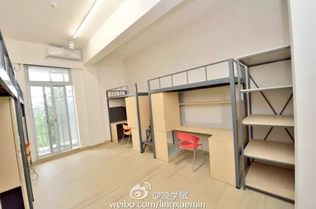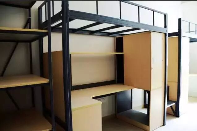 下图是新建的本科生新宿舍,上床下桌,4人间无独立卫浴…
