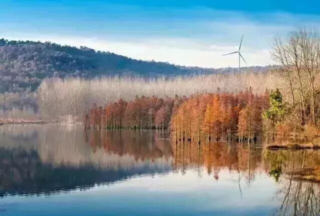 止马岭最美的季节是秋季,从山顶往下看,林间呈现不同的颜色,湿地里栖息着各种候鸟,成群的野鸭在湖面嬉戏,被称为南京的“小九寨沟”。