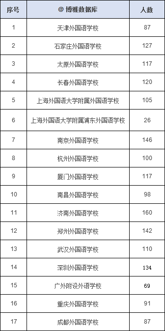 根据教育部阳光高考信息公开平台“保送生拟录取名单”进行整理,2019年16所外国语中学保送生拟录取人数分布排名: