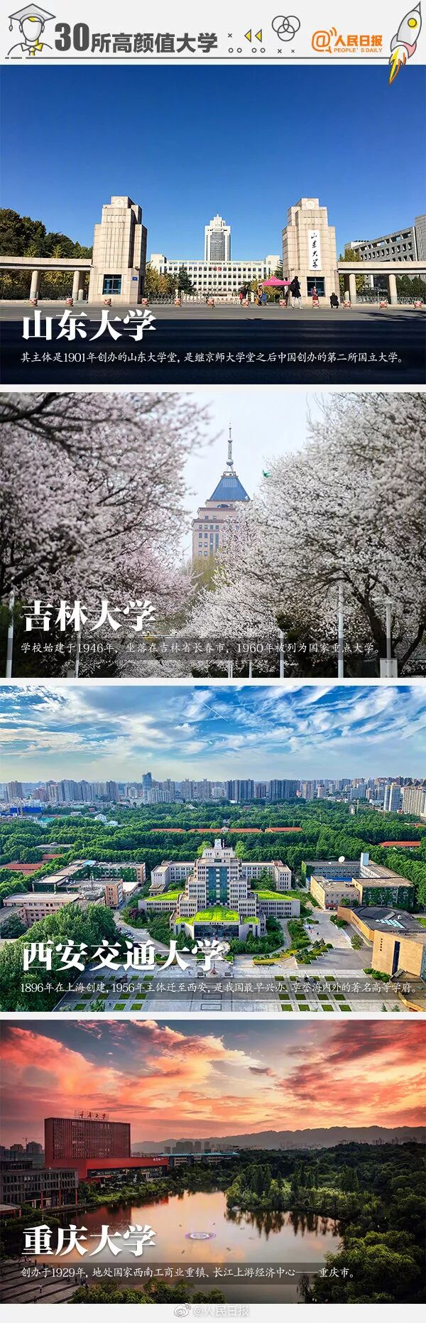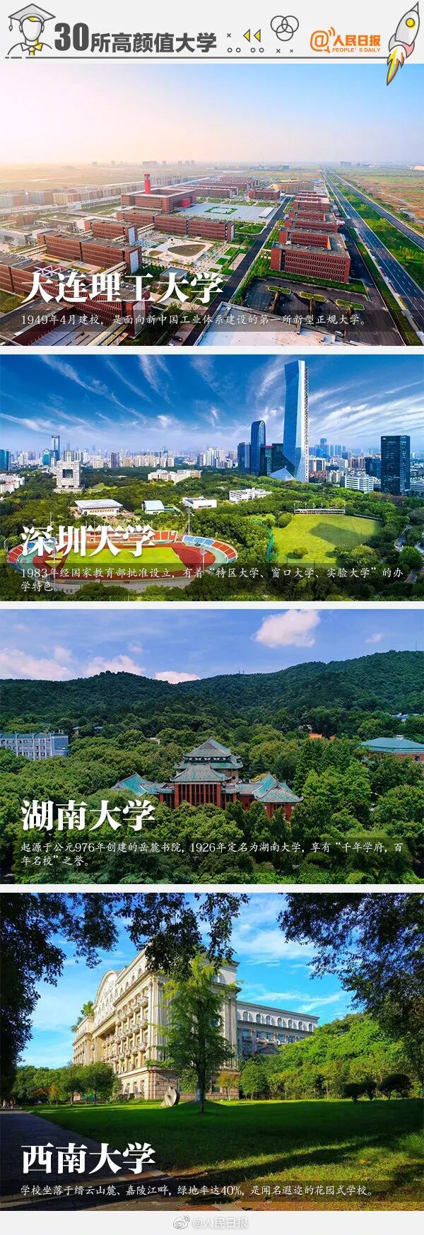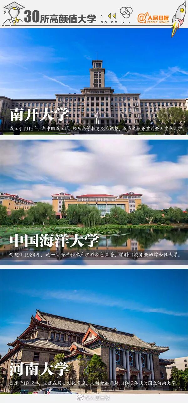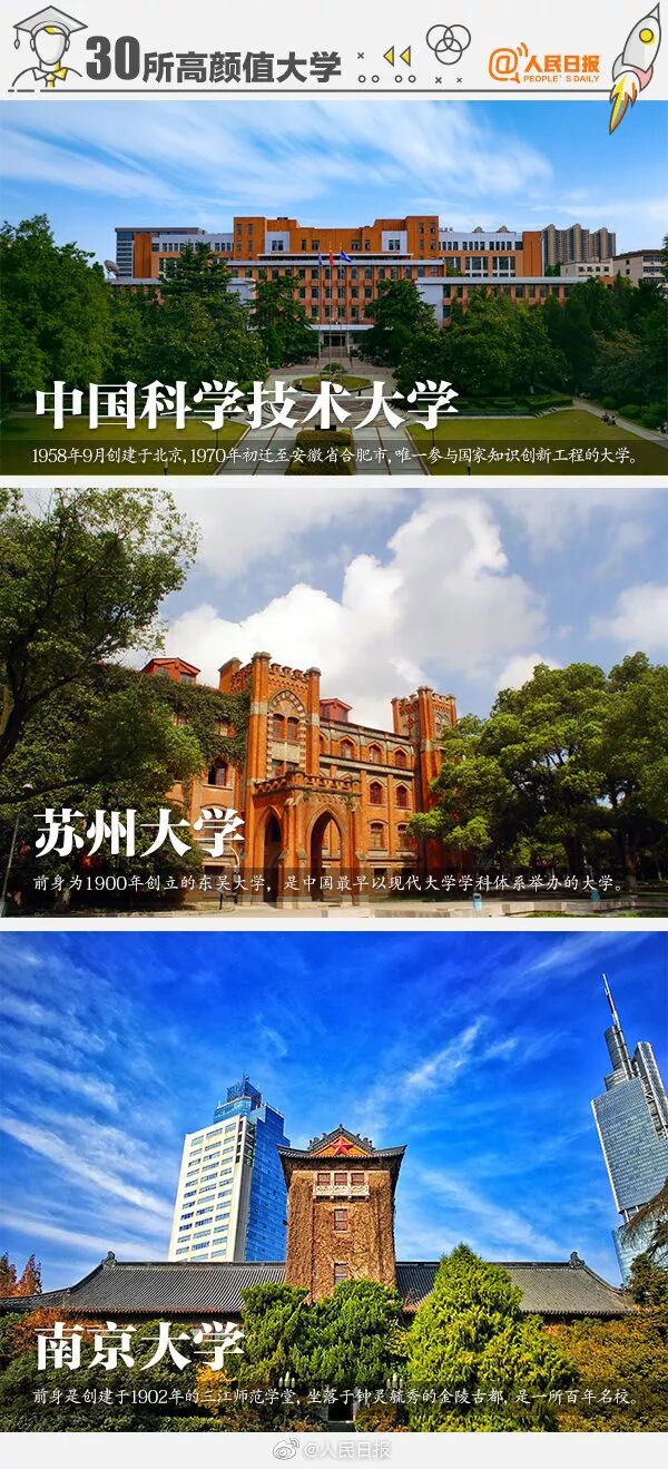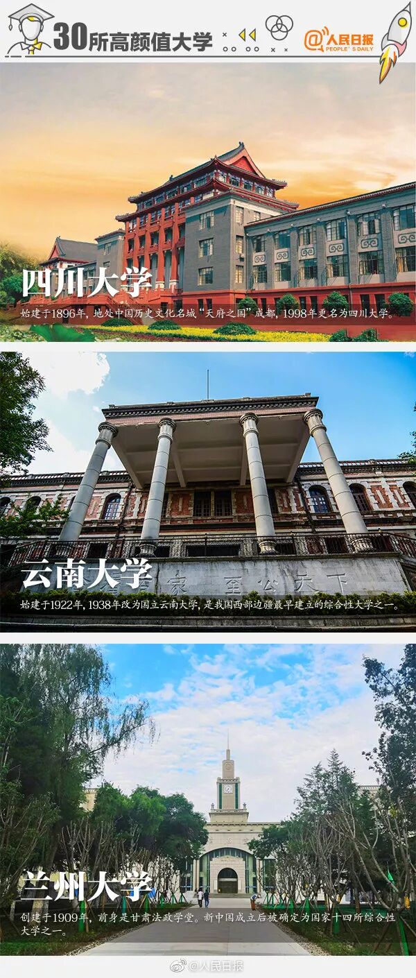 未名湖畔的北京大学、坐落于“人间天堂”苏州的苏州大学、有“花园式学校”之称的西南大学…