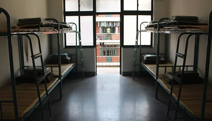 宿舍分为6人间和4人间、普通宿舍和空调宿舍,皆为上床下桌。