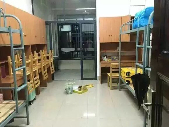 标配四人寝或六人寝,上床下桌,有热水、独卫、阳台,无空调。