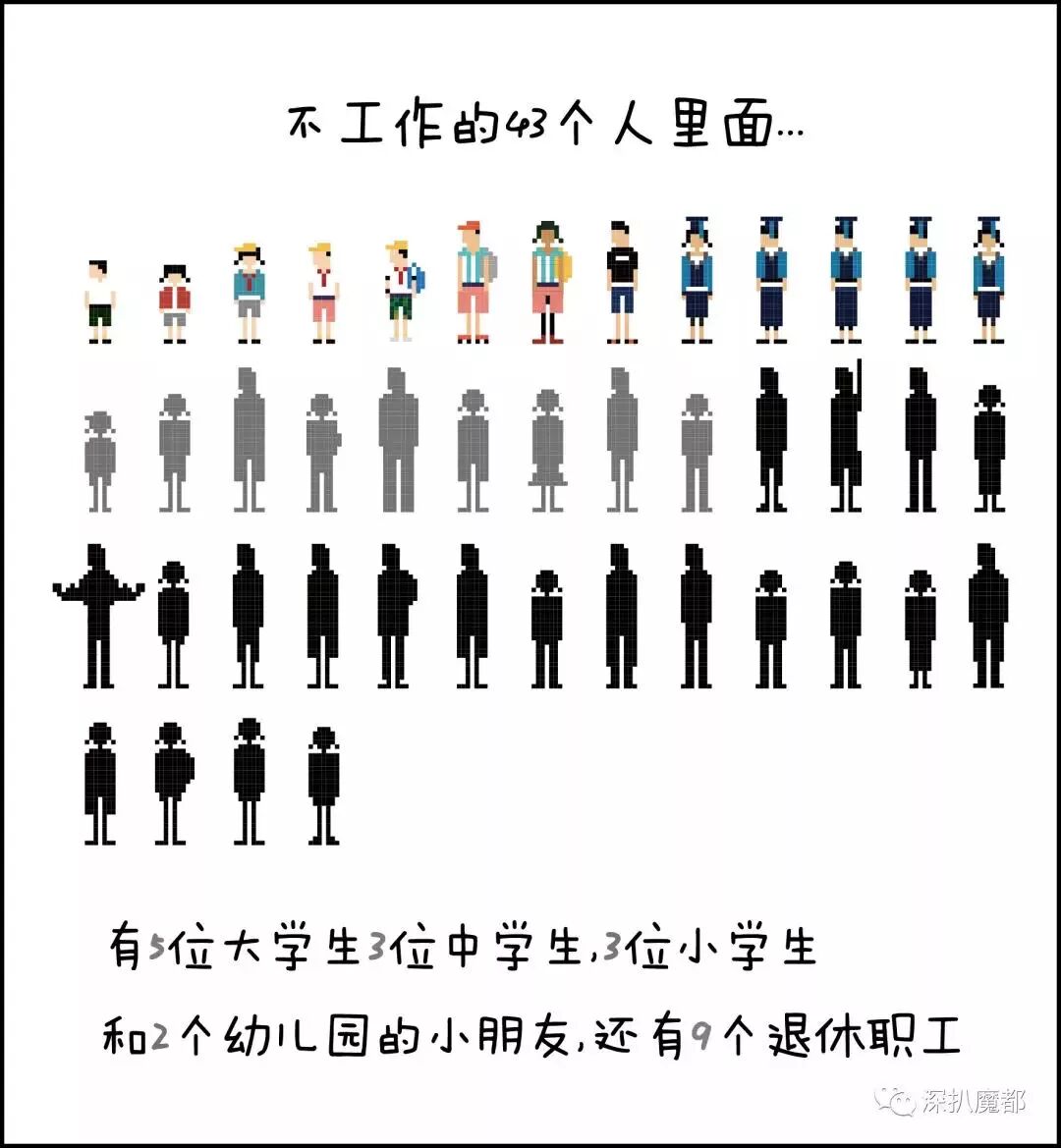 即,上海户籍人口有44%在工作,而外地人有72%在工作。