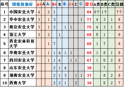 作物学、畜牧学:两个A-;园艺学、农业资源利用、植物保护:3个A+。