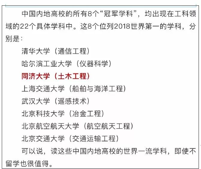 再如:交通运输工程。北京交通大学是世界“冠军高校”,全球第1名,清华大学紧随其后取得了榜眼的位置。