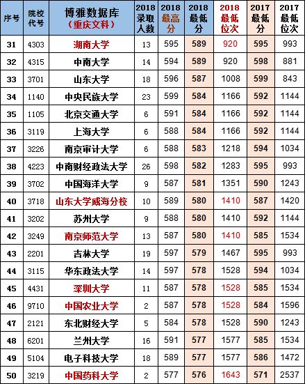 院校 代号 | 博雅数据库 | 2018 录取 人数 | 2018 最高 分 | 2018 最低 分 |