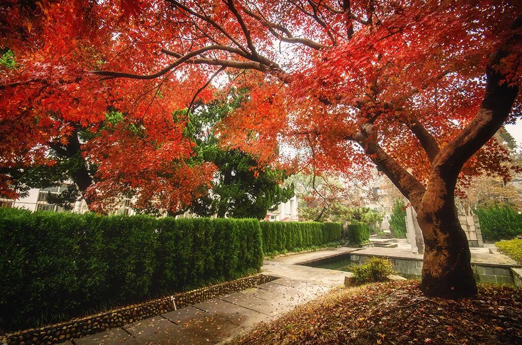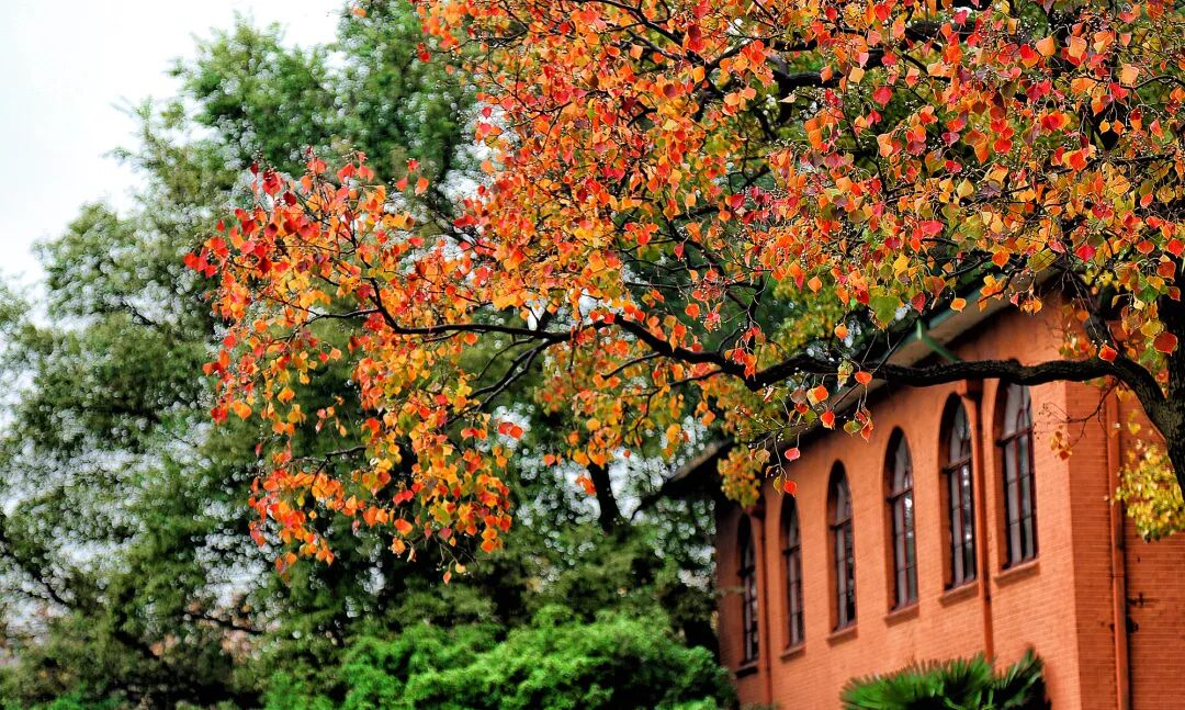 申城的大学校园里,秋景美不胜收,银杏、枫树、梧桐、无患子……这些五彩斑斓的植物把校园打扮得美美哒。