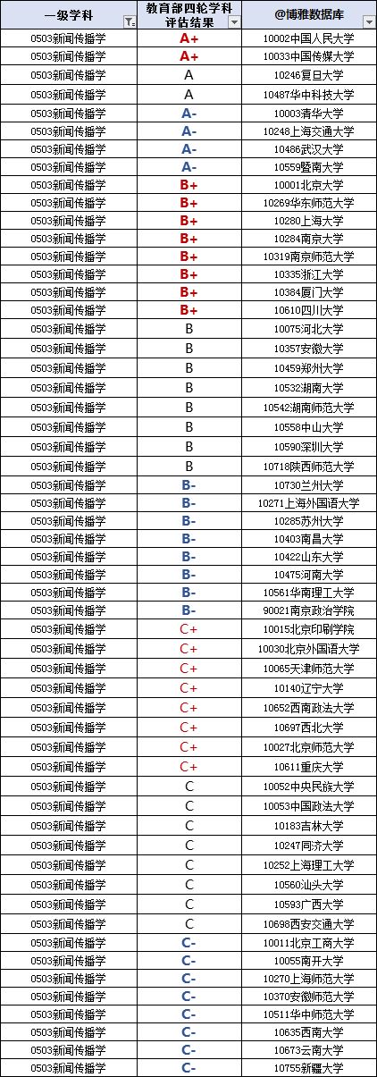 教育部四轮学科评估情况:
