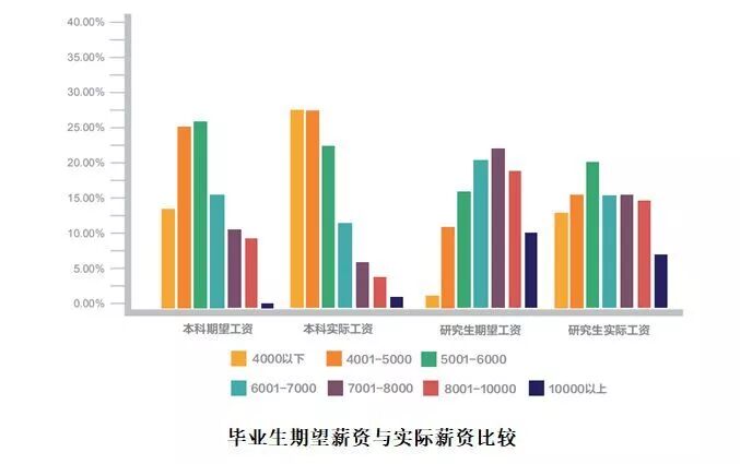 本科生实际薪酬(税后)集中在4000-6000元之间,占比49.97%;