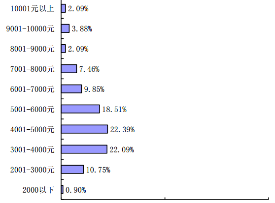 其中,4001-5000 元区 间人数最多,占比 22.39%。