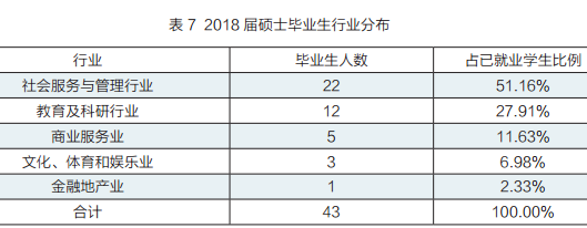 研究生总数为 43 人(不含硕士留学生 21 人),就业人数 43 人,就业率为 100%。