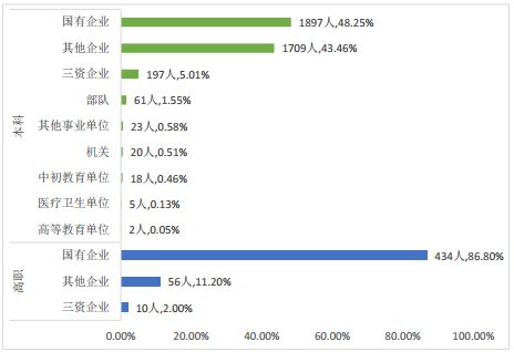 高职毕业生则主要分布在“国有企业”,占比高达 86.80%。
