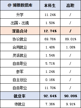 本科毕业生初次就业率为 92.64%。