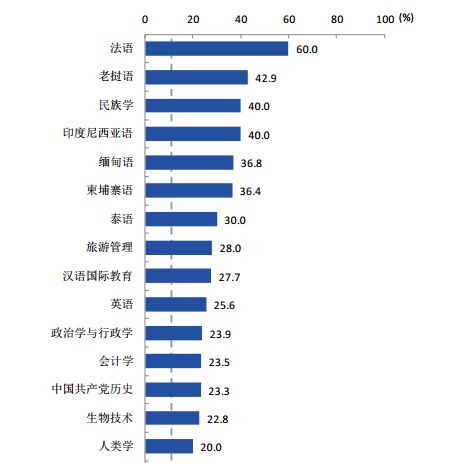 (40.0%)、印度尼西亚语(40.0%)等专业深造率较高。