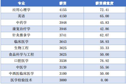 其中,本科毕业生月平均薪资 排名前三的专业分别为医学信息工程、信息管理与信息系统、计算机科学与技 术,薪资分别为 6375 元、6340 元、5294 元,薪资满意度分别为 68.75%、60.00%、 76.47%。