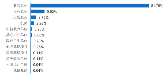 主要流向单位类型为“其它企业”,占比达到 81.79%;其次 为“国有企业”(9.52%)。