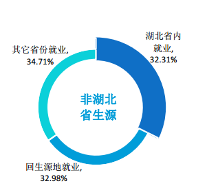 32.31%的非湖北省生源的毕业生也优先考虑在湖北省就业,32.98%的非湖北省生源 毕业生回生源地就业。
